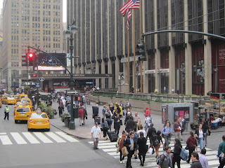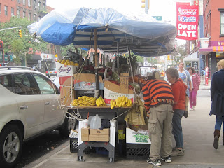 There are also food carts everywhere during the day (by evening, these folks want to go home, but some were still out in Times Square in the evening). As you can see, a lot of fruit and veggie cart were set up, so if you wanted to eat an apple in the Big Apple, you can. There were carts and trucks for everything you could think of from burgers to kabobs to bagels and pastries.